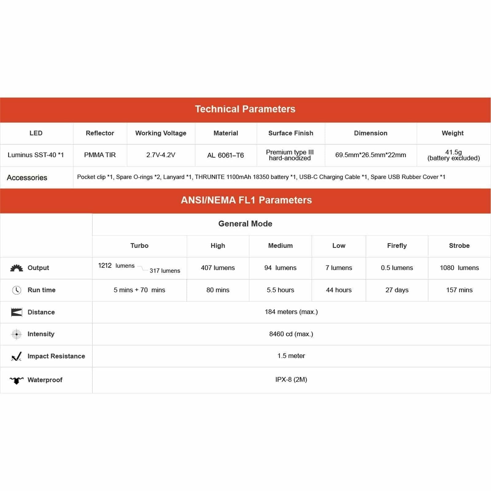 Brilliance in Compactness – With a commanding 1212 lumens output, this flashlight boasts an SST40 LED bulb, illuminating up to 603 ft/184 m. Its PMMA TIR reflector improves the beam distance by 80% compared to its predecessor, ThruNite T1.